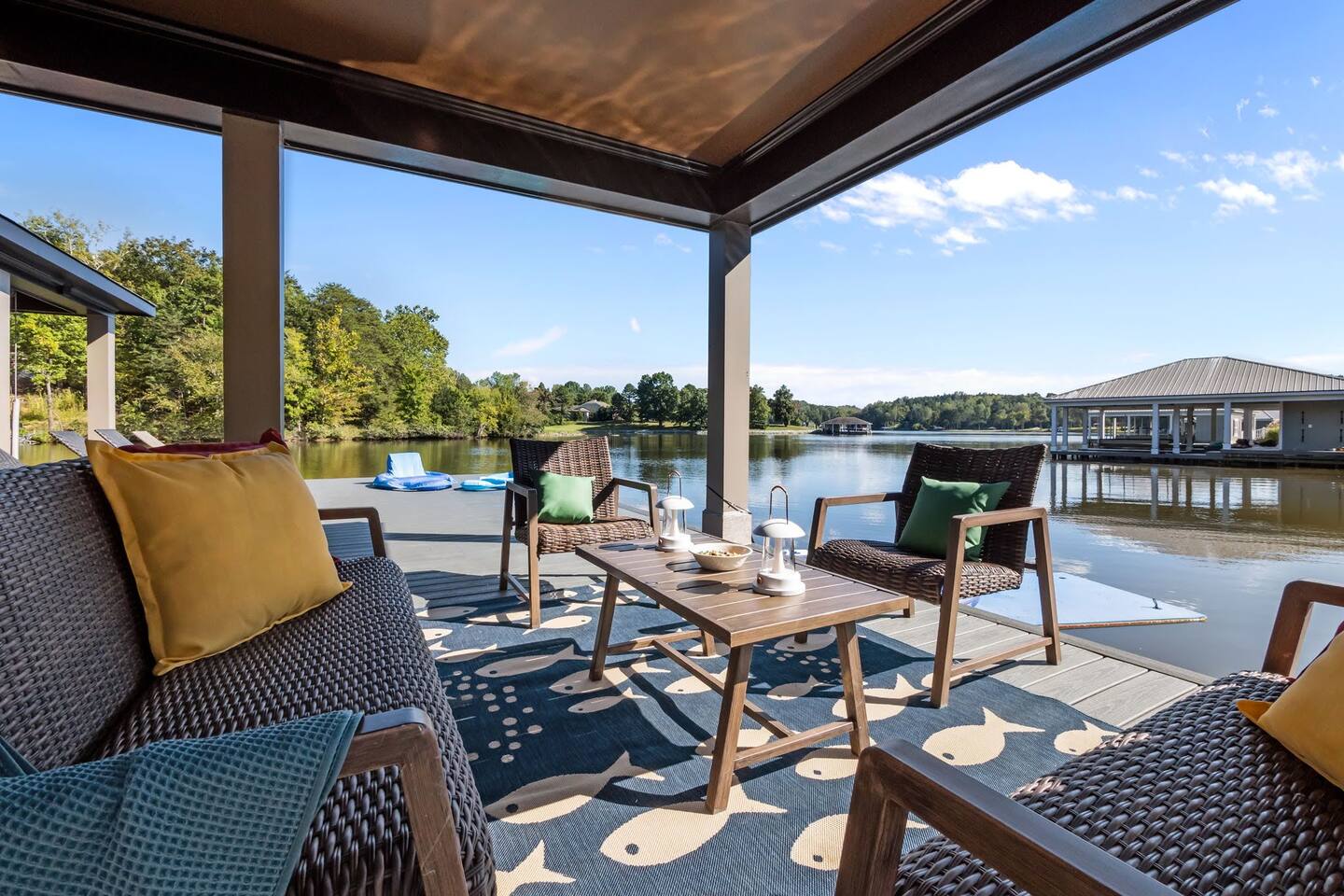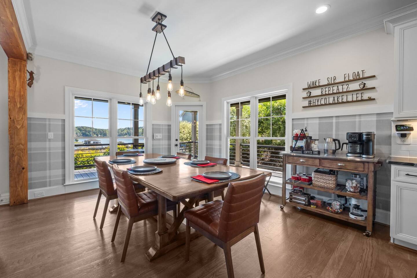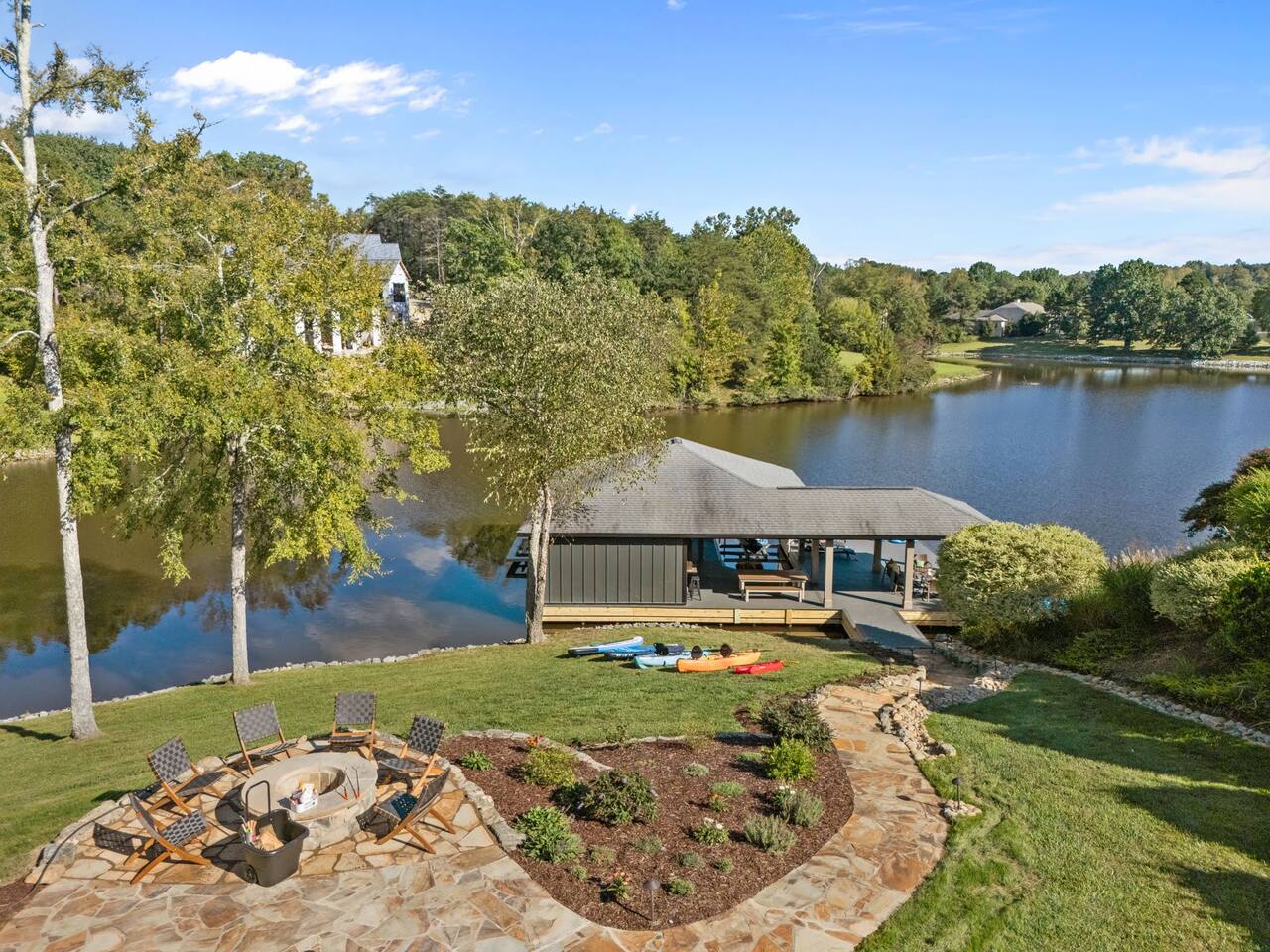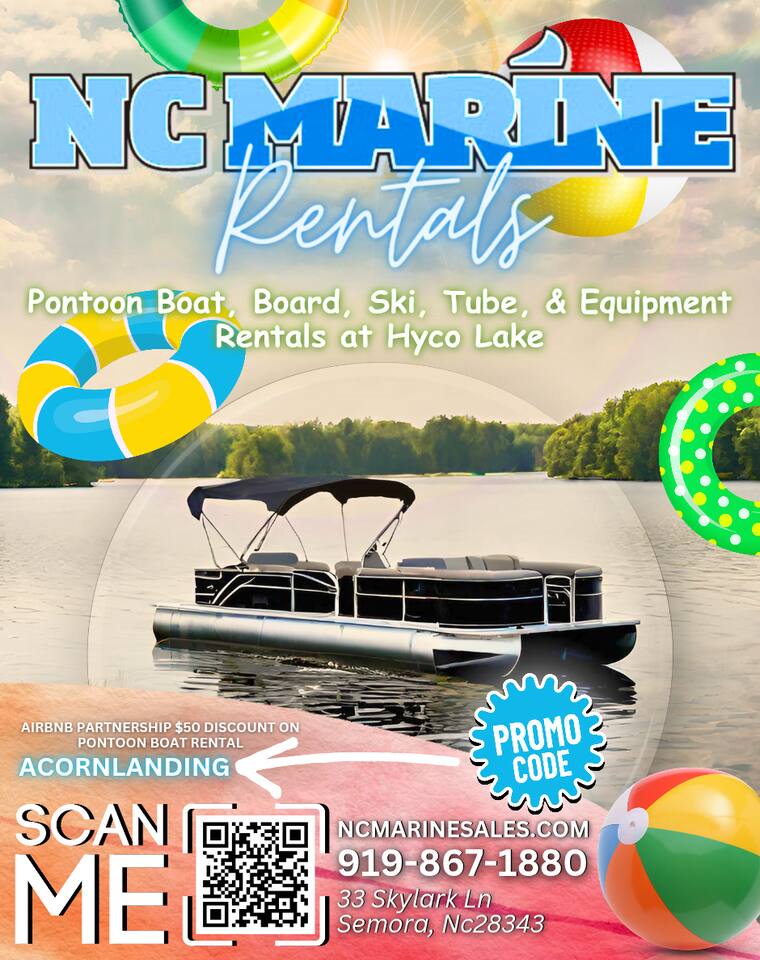 ✨✨HYCO LAKE’S MOST EXCLUSIVE RETREAT✨✨ This modern 🌊 lakefront escape has a beautiful view--nearly every room frames the water. Enjoy year-round deep water in a no-wake cove, an expansive covered private dock, kayaks & paddleboards, a lakeside 🔥 firepit, 6-seat hot tub, and a sprawling grassy yard. Inside, an open layout with a chef’s kitchen that flows into cozy living spaces with Smart TVs 📺, stylish finishes, and playful 🐿️ charm with plenty of fun & games 🎲 for entertainment. The moment you arrive, you’ll know your perfect “Lakecation” has begun. Enjoying these breathtaking lake views 🌅 is as easy as stepping out onto the expansive second-level balcony and you'll be blown away the incredible outdoor hangout spots, the firepit, the spa, rocking chairs, and the dockside water views 🌊. ✨ LIVING & DINING SPACE ✨ The open-concept main level invites connection with a comfortable family room featuring a 2-story stone fireplace, panoramic lake views, 65” smart tv with Spectrum cable tv included. The fully stocked kitchen 🍽️ is a chef's dream come true with a gas stove, gas grill, refrigerator/ice maker, all the tools and standard kitchen appliances with plenty of counter space to work their magic. The kitchen is stocked with all the cookware, cooking essentials (flour, sugar, S & P 🧂, cooking oil, among the basics), utensils, glassware and tableware needed to entertain a large group. Use the ☕ coffee bar to make the perfect cup of joe whenever the need for caffeine hits. ✨ FUN & GAMES ✨ Downstairs, the recreation room is built for entertainment, including a wet bar, built in ice machine 🧊 and 4 refrigerator drawers • 70” smart TV 📺 and large sectional couch • Shuffleboard • Poker table 🃏 • Ping pong table 🏓 • Video arcade with 600+ games 🕹️ • Board Games 🎲 and 🃏cards, mini karaoke 🎤 machine and a Bose 🎶 speaker ✨ Outdoor Living, Elevated ✨ Step outside to discover why Acorn Landing is unlike any other lake house, you'll enjoy a wraparound porch on two levels with seating in a variety of locations. • Covered and comfortable lounge seating (seats 8+) plus a dining table (seats 6) • Propane, direct plumbed grill 🥩 and 🔥fire table (no propane tanks!) • Wood-burning 🔥 fire pit at the lakefront patio • Hot tub with lake views and privacy 💦 • Outdoor games for fun and entertainment 🏸 The fun continues right out into the water! Our 1300 sq ft dock is perfect for turning up your music 🎶, floating on the water in one of our many and floating rafts--or just eating, drinking, and soaking up the sun 🌞 on our loungers on the expansive dock. We have deep water access and there is plenty of room for your own boat ⚓or optionally, take advantage of our exclusive pontoon rental partnership—boats are delivered right to our dock. Swim in deep water, sunbathe 👙, or launch one of our complimentary watercraft: • Two paddle boards 🏄♂️ • Tandem kayak • Kids’ kayak • Standard kayak 🚣 • Life vests from toddler to adult XXL 🦺 • Floating lily pad • Floating Oasis ring • Fishing poles and tackle (bait available nearby) 🎣 ✨ SLEEPING & PRIVATE SPACE✨ 🌿 Primary Suite (Main Floor) The first-floor primary suite has floor-to-ceiling windows overlooking the lake, king sized bed and an ensuite bathroom featuring a double shower. Guests also enjoy a smart TV 📺, desk/work area 💻, ceiling fan, & sound machine. Guests can use the private access door to the wrap-around porch to sneak out to the hot tub or the dock after everyone else goes to bed. A small safe is provided for valuables. 👶 We also have a pack and play and a booster seat available for our youngest guests. 🐠Fishing Bedroom (Second Floor) includes both king-size bed and twin bed, ceiling fan, sound machine, en-suite bathroom with tub/shower combo, 55” smart TV, and lake view. 🛶Boating Bedroom (Second Floor) includes both king-size bed and twin bed, ceiling fan, sound machine, en-suite bathroom with tub/shower combo, 55” smart TV, and lake view. 🛏️ Vintage Bedroom (Lower Level) Two queen-size beds, 55” smart TV, desk/work area, ceiling fan, sound machine, and lake view with private access to the outside and the dock or hot tub. A full bathroom with a walk-in shower is adjacent to the recreation room. With 3 king beds, 2 queens, 2 twin beds and 4.5 bathrooms, this home accommodates up to 12 guests-your comfort is our priority. ✨ TECH & COMFORT ✨ • Lightning fast ⚡Gigabit internet w/WiFi 7 routers throughout the home & the boathouse • Six smart 📺TVs with Spectrum cable • Dual washers and dryers • Complimentary Level 2 (50A) EV charger • Central air and heat • Ample parking • All linens are included. We also have lake/spa towels available for use, so no need to bring them! Located in a quiet, gated community in Semora, NC, Acorn Landing is: • 8 miles to Virginia International Raceway 🏁🏎️ • 22 miles from Danville, VA--including the NEW Caesar’s Casino 🎰🎲🃏 and the Danville River District 🛒 • 66 miles from Raleigh-Durham International Airport (RDU) ✈️ • 14 miles from Roxboro • 44 miles from Durham • 56 miles from Greensboro Acorn Landing is very close to NC Marine Sales located at 33 Skylark Ln, Semora, NC 27343 Hot tub: We make every effort to make sure our hot tub is up and running for your visit. It is new and well maintained. If there are maintenance issues during your stay and the hot tub is unavailable, we are unable to provide a discount or refund as this is only one of many amenities available in our home. It is our intention to have the hot tub available for our guests but this cannot be guaranteed. Fire Table 🔥 (main level balcony) and Fire Pit (back lakefront lawn/patio) are both available for your enjoyment. The fire table is a beautiful addition to our comfortable lounge furniture on the covered