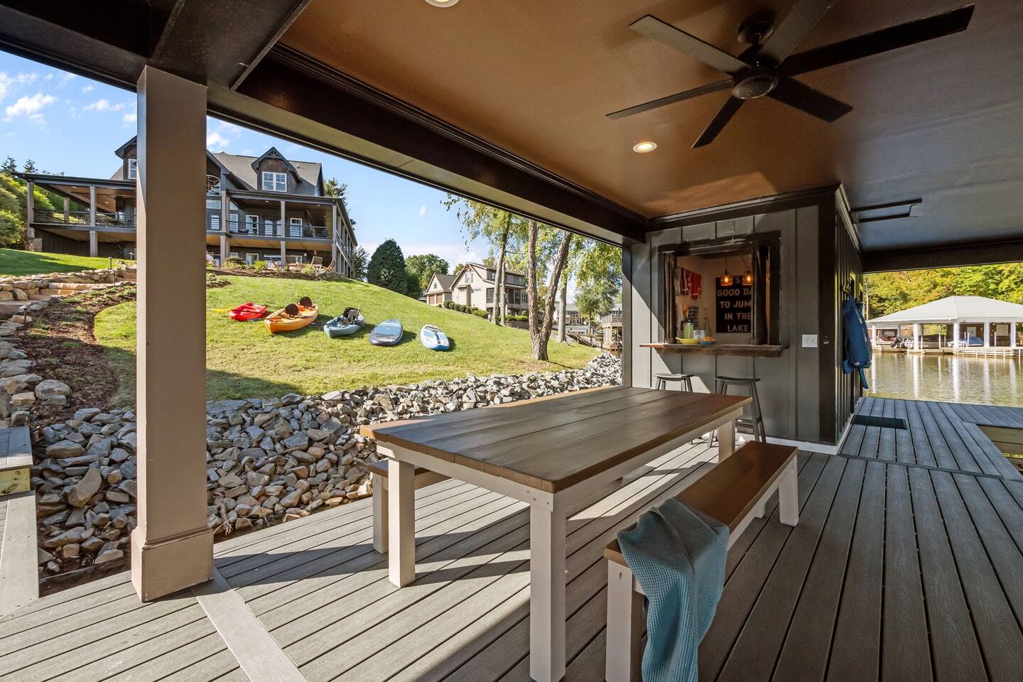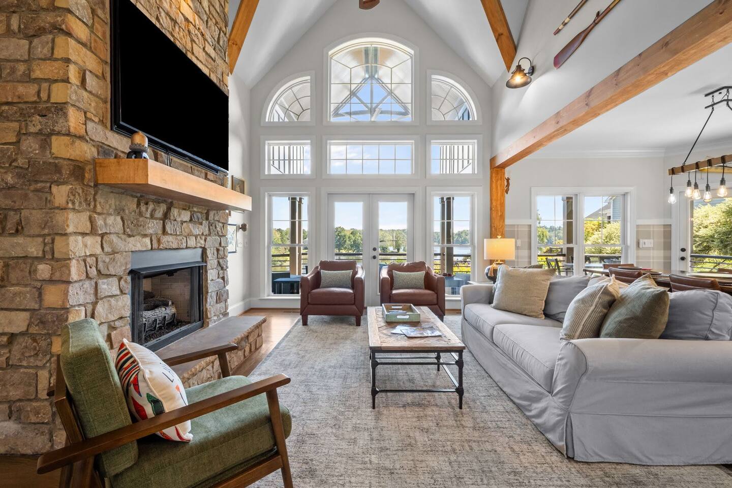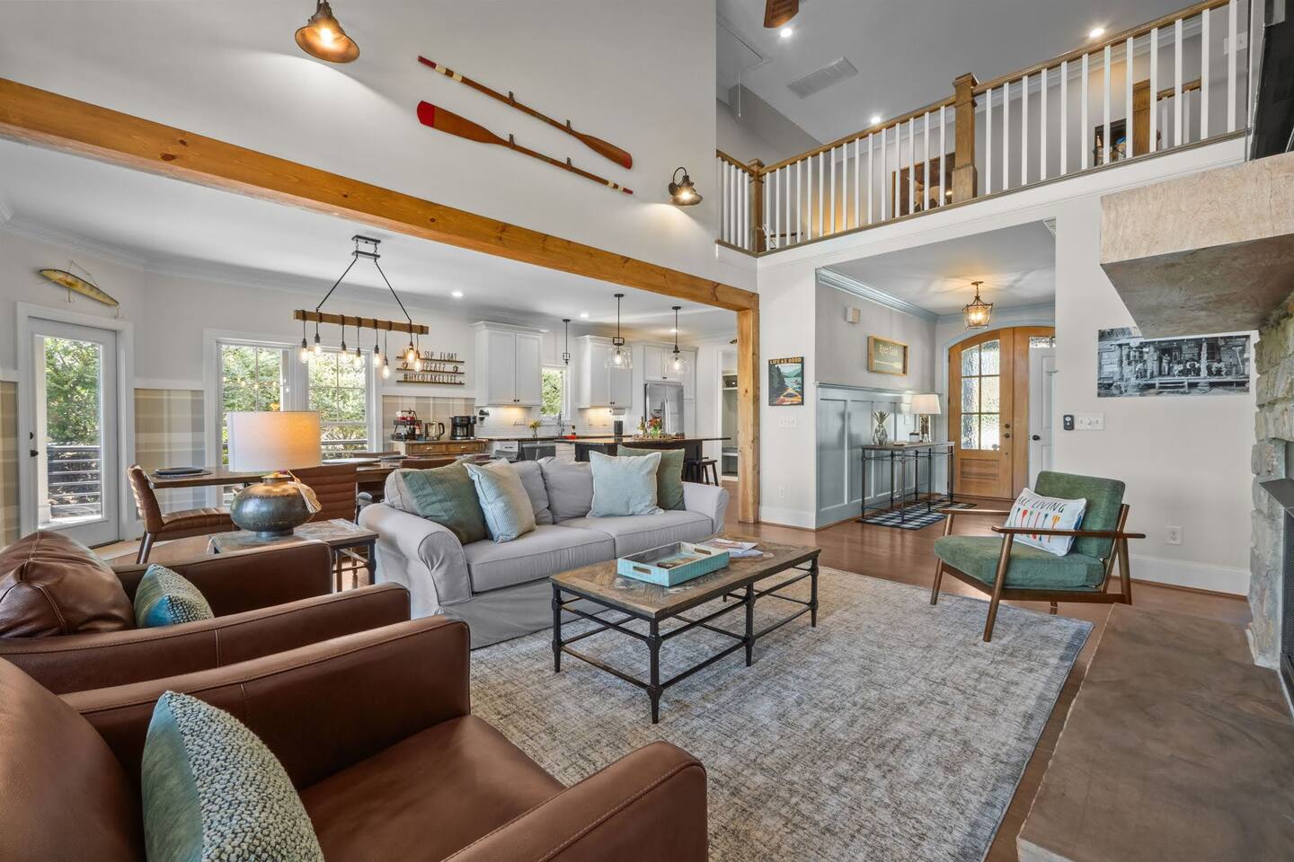 ✨✨HYCO LAKE’S MOST EXCLUSIVE RETREAT✨✨ This modern 🌊 lakefront escape has a beautiful view--nearly every room frames the water. Enjoy year-round deep water in a no-wake cove, an expansive covered private dock, kayaks & paddleboards, a lakeside 🔥 firepit, 6-seat hot tub, and a sprawling grassy yard. Inside, an open layout with a chef’s kitchen that flows into cozy living spaces with Smart TVs 📺, stylish finishes, and playful 🐿️ charm with plenty of fun & games 🎲 for entertainment. The moment you arrive, you’ll know your perfect “Lakecation” has begun. Enjoying these breathtaking lake views 🌅 is as easy as stepping out onto the expansive second-level balcony and you'll be blown away the incredible outdoor hangout spots, the firepit, the spa, rocking chairs, and the dockside water views 🌊. ✨ LIVING & DINING SPACE ✨ The open-concept main level invites connection with a comfortable family room featuring a 2-story stone fireplace, panoramic lake views, 65” smart tv with Spectrum cable tv included. The fully stocked kitchen 🍽️ is a chef's dream come true with a gas stove, gas grill, refrigerator/ice maker, all the tools and standard kitchen appliances with plenty of counter space to work their magic. The kitchen is stocked with all the cookware, cooking essentials (flour, sugar, S & P 🧂, cooking oil, among the basics), utensils, glassware and tableware needed to entertain a large group. Use the ☕ coffee bar to make the perfect cup of joe whenever the need for caffeine hits. ✨ FUN & GAMES ✨ Downstairs, the recreation room is built for entertainment, including a wet bar, built in ice machine 🧊 and 4 refrigerator drawers • 70” smart TV 📺 and large sectional couch • Shuffleboard • Poker table 🃏 • Ping pong table 🏓 • Video arcade with 600+ games 🕹️ • Board Games 🎲 and 🃏cards, mini karaoke 🎤 machine and a Bose 🎶 speaker ✨ Outdoor Living, Elevated ✨ Step outside to discover why Acorn Landing is unlike any other lake house, you'll enjoy a wraparound porch on two levels with seating in a variety of locations. • Covered and comfortable lounge seating (seats 8+) plus a dining table (seats 6) • Propane, direct plumbed grill 🥩 and 🔥fire table (no propane tanks!) • Wood-burning 🔥 fire pit at the lakefront patio • Hot tub with lake views and privacy 💦 • Outdoor games for fun and entertainment 🏸 The fun continues right out into the water! Our 1300 sq ft dock is perfect for turning up your music 🎶, floating on the water in one of our many and floating rafts--or just eating, drinking, and soaking up the sun 🌞 on our loungers on the expansive dock. We have deep water access and there is plenty of room for your own boat ⚓or optionally, take advantage of our exclusive pontoon rental partnership—boats are delivered right to our dock. Swim in deep water, sunbathe 👙, or launch one of our complimentary watercraft: • Two paddle boards 🏄♂️ • Tandem kayak • Kids’ kayak • Standard kayak 🚣 • Life vests from toddler to adult XXL 🦺 • Floating lily pad • Floating Oasis ring • Fishing poles and tackle (bait available nearby) 🎣 ✨ SLEEPING & PRIVATE SPACE✨ 🌿 Primary Suite (Main Floor) The first-floor primary suite has floor-to-ceiling windows overlooking the lake, king sized bed and an ensuite bathroom featuring a double shower. Guests also enjoy a smart TV 📺, desk/work area 💻, ceiling fan, & sound machine. Guests can use the private access door to the wrap-around porch to sneak out to the hot tub or the dock after everyone else goes to bed. A small safe is provided for valuables. 👶 We also have a pack and play and a booster seat available for our youngest guests. 🐠Fishing Bedroom (Second Floor) includes both king-size bed and twin bed, ceiling fan, sound machine, en-suite bathroom with tub/shower combo, 55” smart TV, and lake view. 🛶Boating Bedroom (Second Floor) includes both king-size bed and twin bed, ceiling fan, sound machine, en-suite bathroom with tub/shower combo, 55” smart TV, and lake view. 🛏️ Vintage Bedroom (Lower Level) Two queen-size beds, 55” smart TV, desk/work area, ceiling fan, sound machine, and lake view with private access to the outside and the dock or hot tub. A full bathroom with a walk-in shower is adjacent to the recreation room. With 3 king beds, 2 queens, 2 twin beds and 4.5 bathrooms, this home accommodates up to 12 guests-your comfort is our priority. ✨ TECH & COMFORT ✨ • Lightning fast ⚡Gigabit internet w/WiFi 7 routers throughout the home & the boathouse • Six smart 📺TVs with Spectrum cable • Dual washers and dryers • Complimentary Level 2 (50A) EV charger • Central air and heat • Ample parking • All linens are included. We also have lake/spa towels available for use, so no need to bring them! Located in a quiet, gated community in Semora, NC, Acorn Landing is: • 8 miles to Virginia International Raceway 🏁🏎️ • 22 miles from Danville, VA--including the NEW Caesar’s Casino 🎰🎲🃏 and the Danville River District 🛒 • 66 miles from Raleigh-Durham International Airport (RDU) ✈️ • 14 miles from Roxboro • 44 miles from Durham • 56 miles from Greensboro Acorn Landing is very close to NC Marine Sales located at 33 Skylark Ln, Semora, NC 27343 Hot tub: We make every effort to make sure our hot tub is up and running for your visit. It is new and well maintained. If there are maintenance issues during your stay and the hot tub is unavailable, we are unable to provide a discount or refund as this is only one of many amenities available in our home. It is our intention to have the hot tub available for our guests but this cannot be guaranteed. Fire Table 🔥 (main level balcony) and Fire Pit (back lakefront lawn/patio) are both available for your enjoyment. The fire table is a beautiful addition to our comfortable lounge furniture on the covered