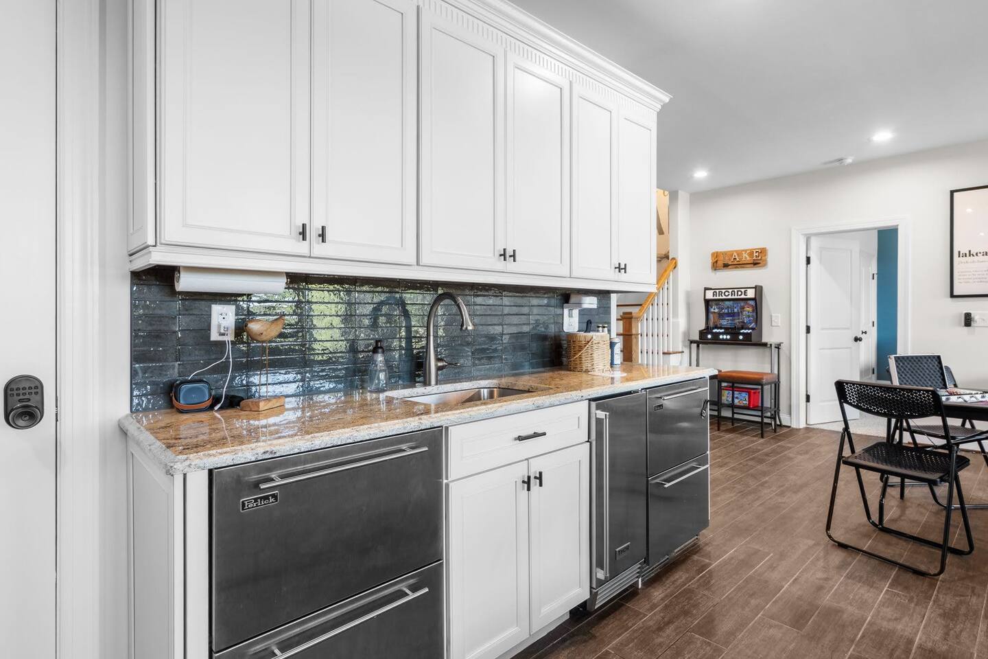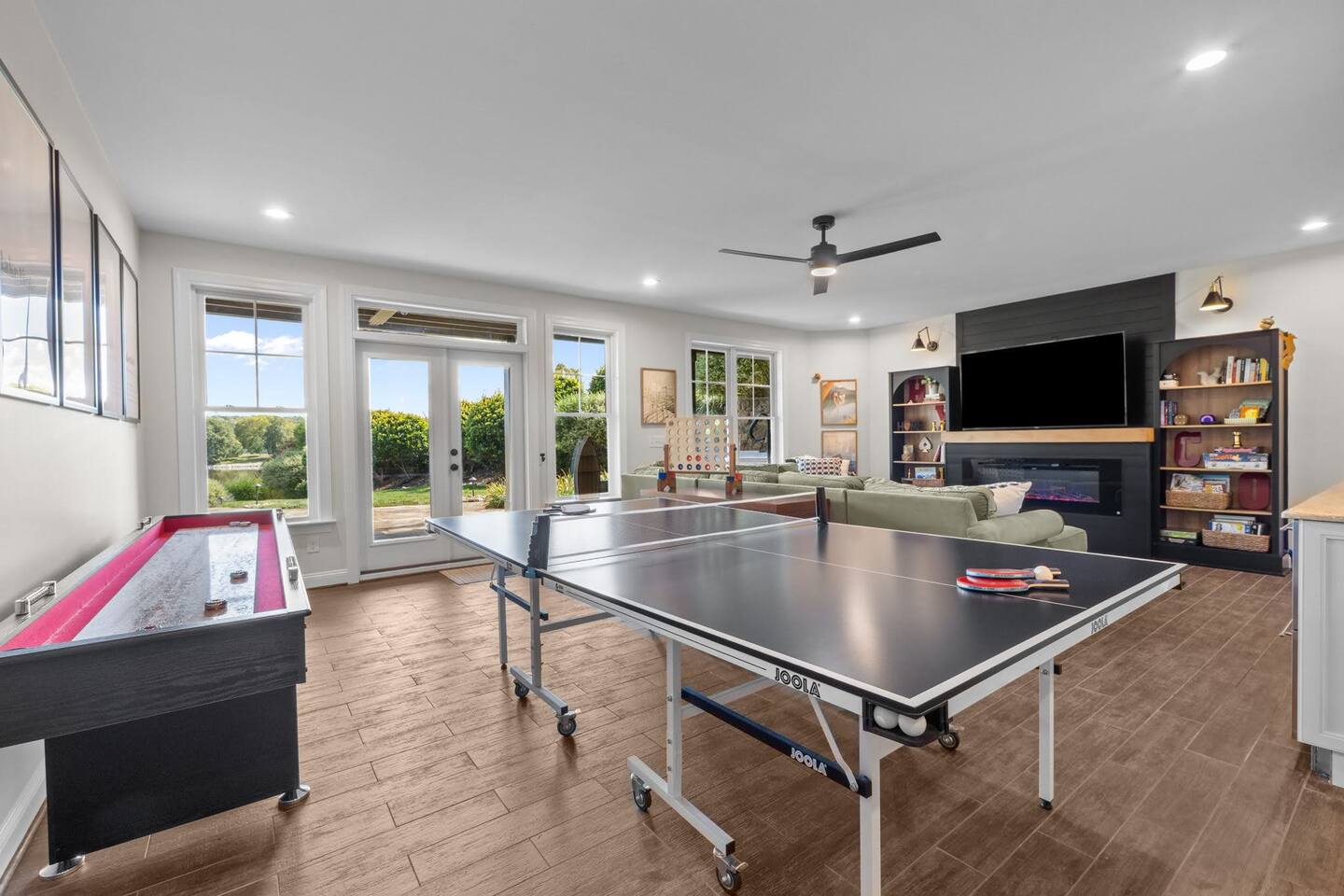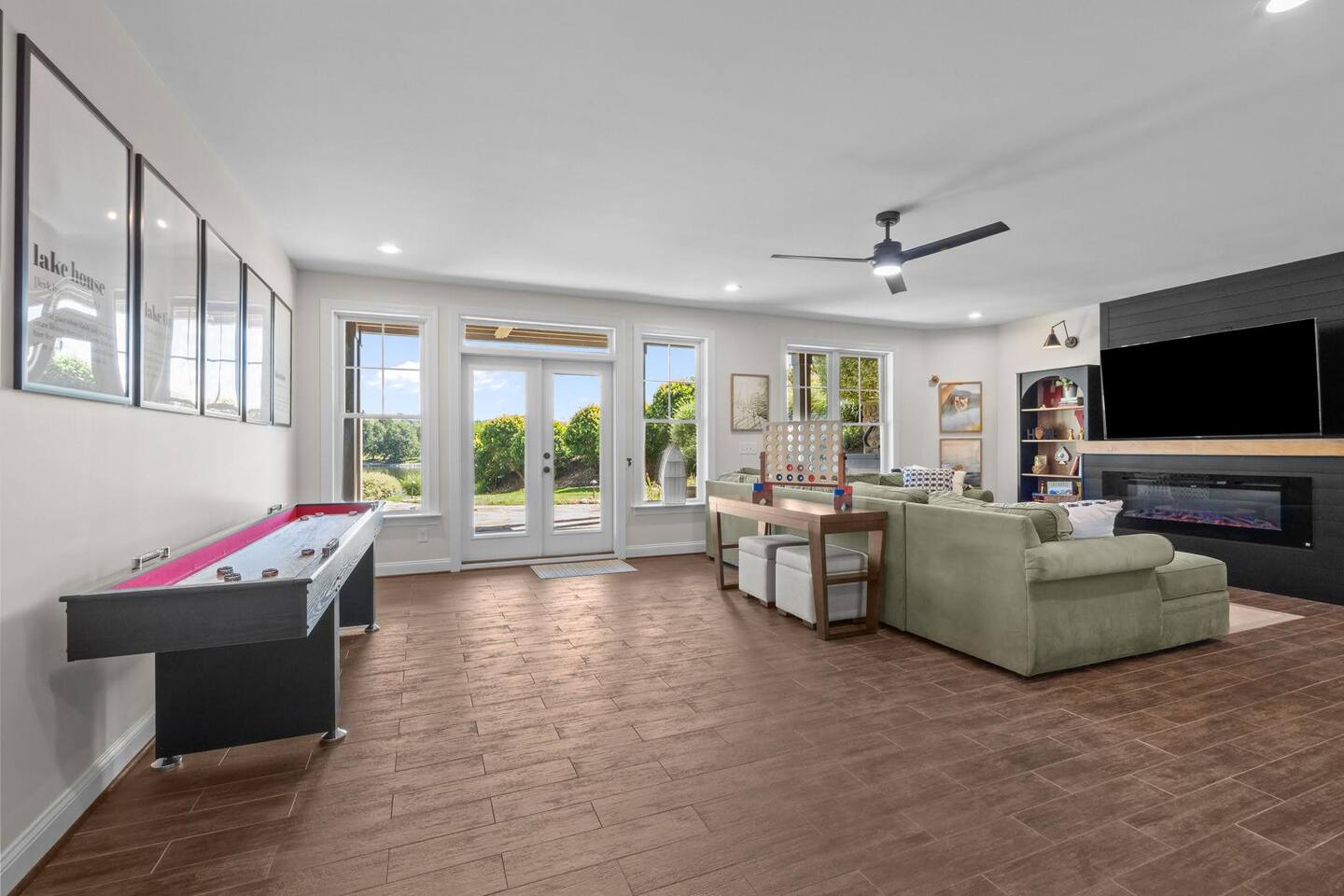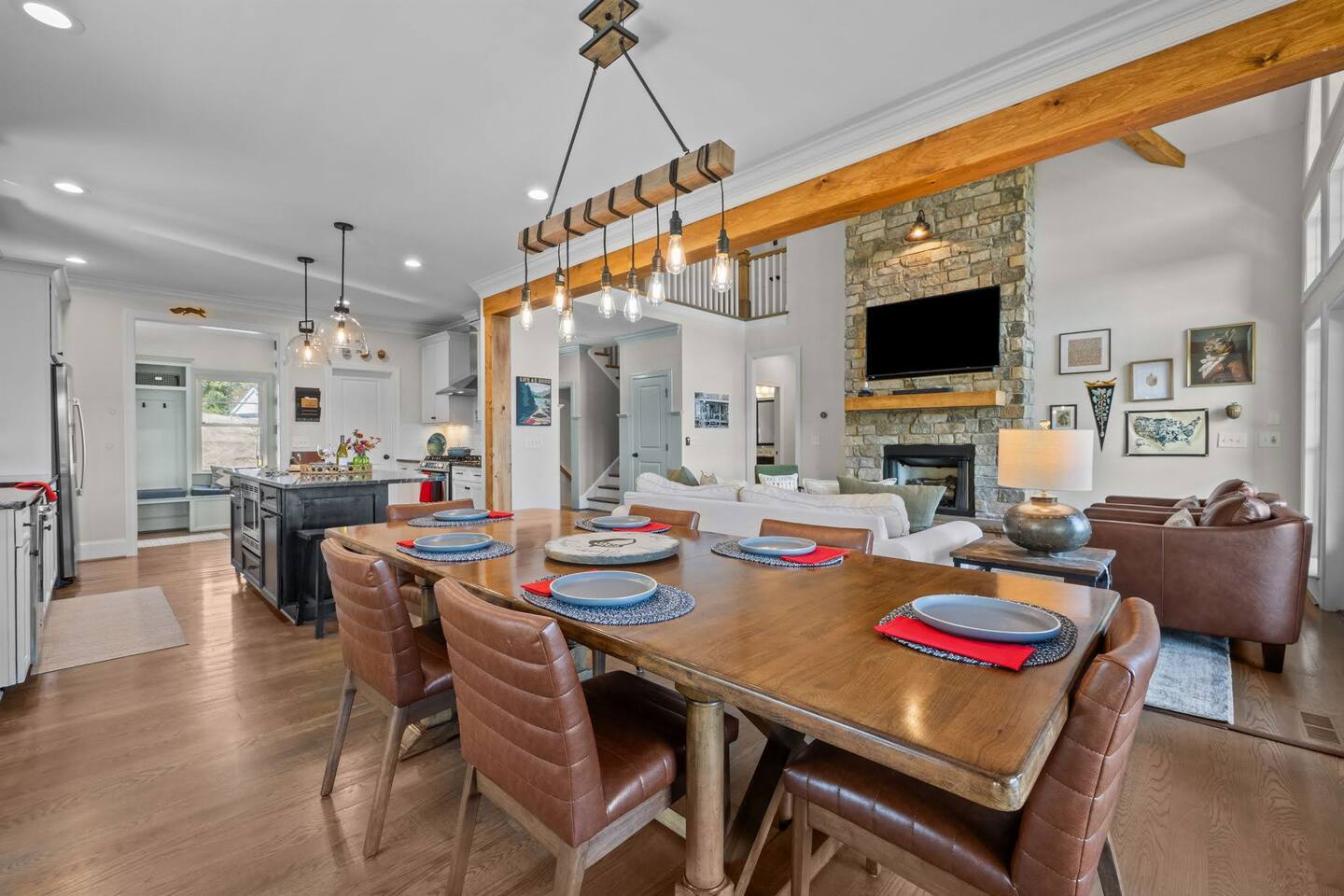 ✨✨HYCO LAKE’S MOST EXCLUSIVE RETREAT✨✨ This modern 🌊 lakefront escape has a beautiful view--nearly every room frames the water. Enjoy year-round deep water in a no-wake cove, an expansive covered private dock, kayaks & paddleboards, a lakeside 🔥 firepit, 6-seat hot tub, and a sprawling grassy yard. Inside, an open layout with a chef’s kitchen that flows into cozy living spaces with Smart TVs 📺, stylish finishes, and playful 🐿️ charm with plenty of fun & games 🎲 for entertainment. The moment you arrive, you’ll know your perfect “Lakecation” has begun. Enjoying these breathtaking lake views 🌅 is as easy as stepping out onto the expansive second-level balcony and you'll be blown away the incredible outdoor hangout spots, the firepit, the spa, rocking chairs, and the dockside water views 🌊. ✨ LIVING & DINING SPACE ✨ The open-concept main level invites connection with a comfortable family room featuring a 2-story stone fireplace, panoramic lake views, 65” smart tv with Spectrum cable tv included. The fully stocked kitchen 🍽️ is a chef's dream come true with a gas stove, gas grill, refrigerator/ice maker, all the tools and standard kitchen appliances with plenty of counter space to work their magic. The kitchen is stocked with all the cookware, cooking essentials (flour, sugar, S & P 🧂, cooking oil, among the basics), utensils, glassware and tableware needed to entertain a large group. Use the ☕ coffee bar to make the perfect cup of joe whenever the need for caffeine hits. ✨ FUN & GAMES ✨ Downstairs, the recreation room is built for entertainment, including a wet bar, built in ice machine 🧊 and 4 refrigerator drawers • 70” smart TV 📺 and large sectional couch • Shuffleboard • Poker table 🃏 • Ping pong table 🏓 • Video arcade with 600+ games 🕹️ • Board Games 🎲 and 🃏cards, mini karaoke 🎤 machine and a Bose 🎶 speaker ✨ Outdoor Living, Elevated ✨ Step outside to discover why Acorn Landing is unlike any other lake house, you'll enjoy a wraparound porch on two levels with seating in a variety of locations. • Covered and comfortable lounge seating (seats 8+) plus a dining table (seats 6) • Propane, direct plumbed grill 🥩 and 🔥fire table (no propane tanks!) • Wood-burning 🔥 fire pit at the lakefront patio • Hot tub with lake views and privacy 💦 • Outdoor games for fun and entertainment 🏸 The fun continues right out into the water! Our 1300 sq ft dock is perfect for turning up your music 🎶, floating on the water in one of our many and floating rafts--or just eating, drinking, and soaking up the sun 🌞 on our loungers on the expansive dock. We have deep water access and there is plenty of room for your own boat ⚓or optionally, take advantage of our exclusive pontoon rental partnership—boats are delivered right to our dock. Swim in deep water, sunbathe 👙, or launch one of our complimentary watercraft: • Two paddle boards 🏄♂️ • Tandem kayak • Kids’ kayak • Standard kayak 🚣 • Life vests from toddler to adult XXL 🦺 • Floating lily pad • Floating Oasis ring • Fishing poles and tackle (bait available nearby) 🎣 ✨ SLEEPING & PRIVATE SPACE✨ 🌿 Primary Suite (Main Floor) The first-floor primary suite has floor-to-ceiling windows overlooking the lake, king sized bed and an ensuite bathroom featuring a double shower. Guests also enjoy a smart TV 📺, desk/work area 💻, ceiling fan, & sound machine. Guests can use the private access door to the wrap-around porch to sneak out to the hot tub or the dock after everyone else goes to bed. A small safe is provided for valuables. 👶 We also have a pack and play and a booster seat available for our youngest guests. 🐠Fishing Bedroom (Second Floor) includes both king-size bed and twin bed, ceiling fan, sound machine, en-suite bathroom with tub/shower combo, 55” smart TV, and lake view. 🛶Boating Bedroom (Second Floor) includes both king-size bed and twin bed, ceiling fan, sound machine, en-suite bathroom with tub/shower combo, 55” smart TV, and lake view. 🛏️ Vintage Bedroom (Lower Level) Two queen-size beds, 55” smart TV, desk/work area, ceiling fan, sound machine, and lake view with private access to the outside and the dock or hot tub. A full bathroom with a walk-in shower is adjacent to the recreation room. With 3 king beds, 2 queens, 2 twin beds and 4.5 bathrooms, this home accommodates up to 12 guests-your comfort is our priority. ✨ TECH & COMFORT ✨ • Lightning fast ⚡Gigabit internet w/WiFi 7 routers throughout the home & the boathouse • Six smart 📺TVs with Spectrum cable • Dual washers and dryers • Complimentary Level 2 (50A) EV charger • Central air and heat • Ample parking • All linens are included. We also have lake/spa towels available for use, so no need to bring them! Located in a quiet, gated community in Semora, NC, Acorn Landing is: • 8 miles to Virginia International Raceway 🏁🏎️ • 22 miles from Danville, VA--including the NEW Caesar’s Casino 🎰🎲🃏 and the Danville River District 🛒 • 66 miles from Raleigh-Durham International Airport (RDU) ✈️ • 14 miles from Roxboro • 44 miles from Durham • 56 miles from Greensboro Acorn Landing is very close to NC Marine Sales located at 33 Skylark Ln, Semora, NC 27343 Hot tub: We make every effort to make sure our hot tub is up and running for your visit. It is new and well maintained. If there are maintenance issues during your stay and the hot tub is unavailable, we are unable to provide a discount or refund as this is only one of many amenities available in our home. It is our intention to have the hot tub available for our guests but this cannot be guaranteed. Fire Table 🔥 (main level balcony) and Fire Pit (back lakefront lawn/patio) are both available for your enjoyment. The fire table is a beautiful addition to our comfortable lounge furniture on the covered